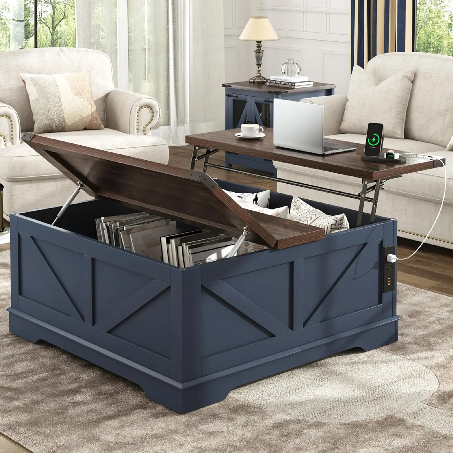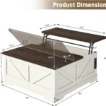 - 40" x 40" Large Farmhouse Square Coffee Table: Our white farmhouse lift top square coffee table with storage adopts a unique 40" x 40" large size design, which is very suitable for large living rooms and large spaces. Classic barn door appearance, rustic original wood grain finish and metal corners combine design bring a warm farmhouse aesthetic. Complement for living rooms and suit for any modern or rustic rooms.